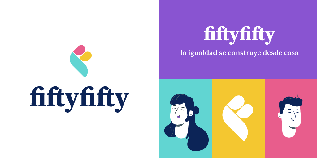 La solución va de repartir tareas y de mostrar gráficos. Esas dos premisas las quise incorporar al logotipo frente a otras alternativas en las que trabajé más enfocadas a las tareas o la pareja. El objetivo de la solución es conseguir un 50%-50% y no repartos consensuados diferentes. De ahí sale la expresión “fifty fifty”.